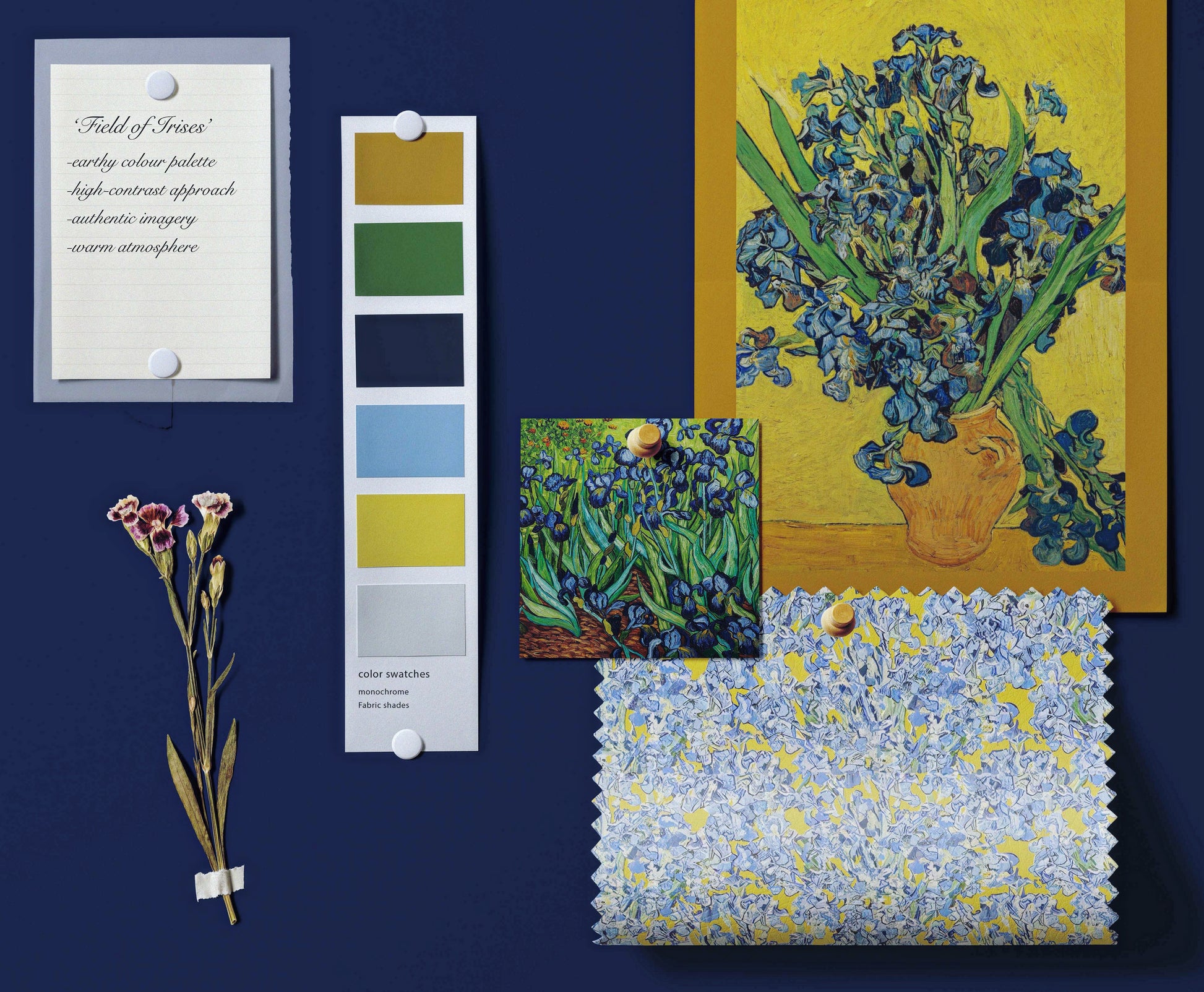 A vivid homage to Van Gogh’s “Irises,” this design bursts with expressive brushstrokes and rich blues and purples. It brings the timeless beauty of impressionist gardens to your wardrobe.