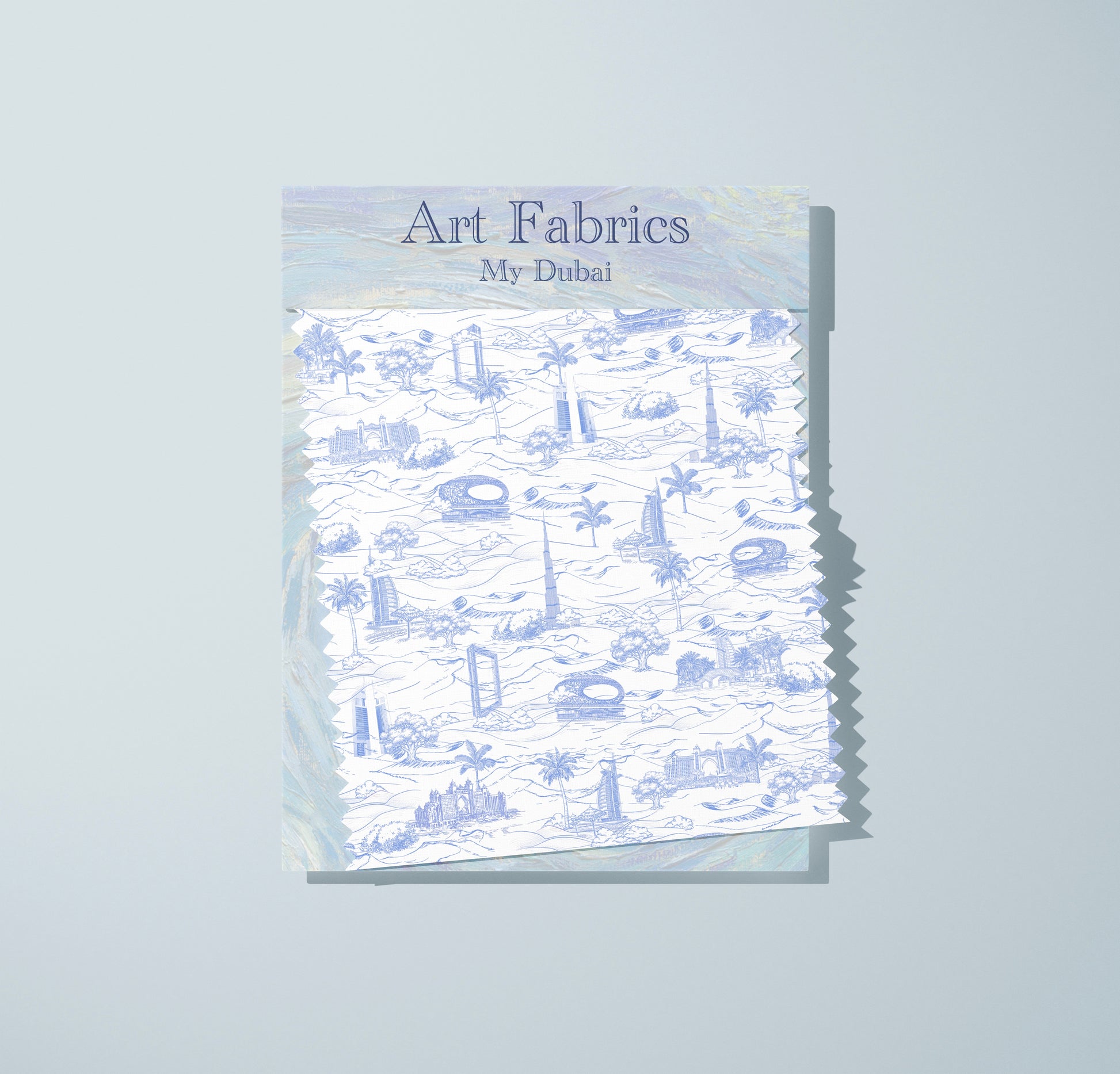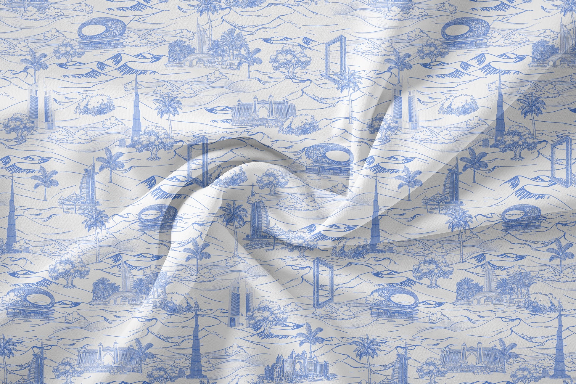 White etoile de jouy capturing iconic Dubai landmarks. A sophisticated tribute to the city’s skyline and spirit